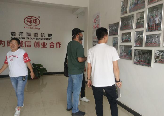 2018年7月12日,沙特阿拉伯客戶參觀樂陵市瑞騰機(jī)械制造有限公司,瑞騰公司王經(jīng)理帶沙特客戶參觀了瑞祥面粉機(jī)成品車間以及生產(chǎn)車間,并詳細(xì)介紹了面粉機(jī)設(shè)備結(jié)構(gòu)及工作流程,沙特阿拉伯客戶對(duì)瑞騰公司的設(shè)備表示贊同并簽訂了購機(jī)合同。
